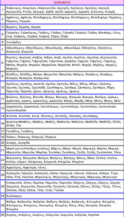 Μήν ξεχάσετε να ευχηθείτε σε όσους γιορτάζουν τον Νοέμβριο!